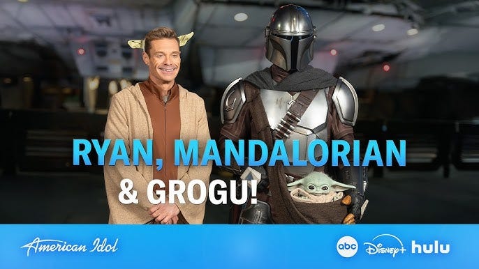 The night after, Star Wars showed up on American Idol’s Disney Night, complete with cringey social media posts showing Ryan Seacrest in a vaguely unsettling Yoda costume. And a few weeks before that, at the Oscars, Sigourney Weaver and Pedro Pascal, the actual stars of the film, were presenting an award when the segment pivoted to hey look, it’s that little green fella your wife loved in that Disney+ show six years ago.