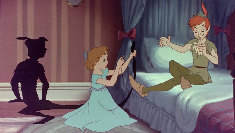 This can take many forms: Sexuality. Career ambition. Artistic expression. Kink. You name it. For example…Peter Pan’s shadow self was quite literal and meant to symbolize how he’s running away from adulthood & responsibility (including the possibility of romance with Wendy).