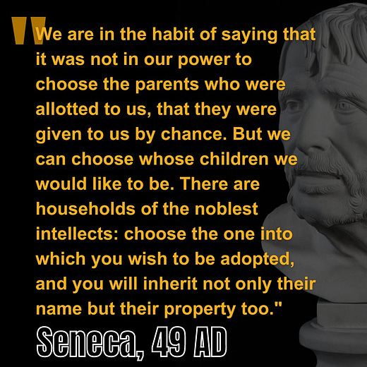 Seneca, a Stoic philosopher and advisor to Roman Emperor Nero, was a noted fan of looking beyond your immediate circles of influence for inspiration and belonging. Part of his schtick was to defy Stoic orthodoxy and heap some praise on rival schools of thought. I like reading him. This passage comes from On The Shortness of Live.